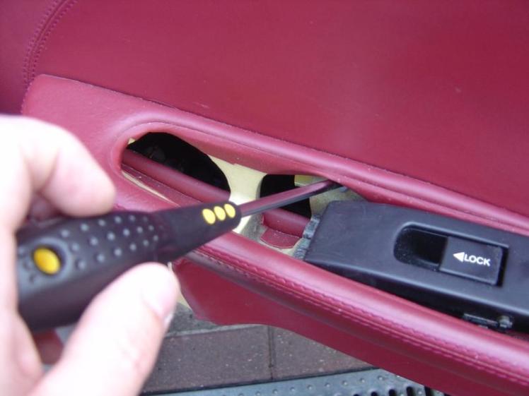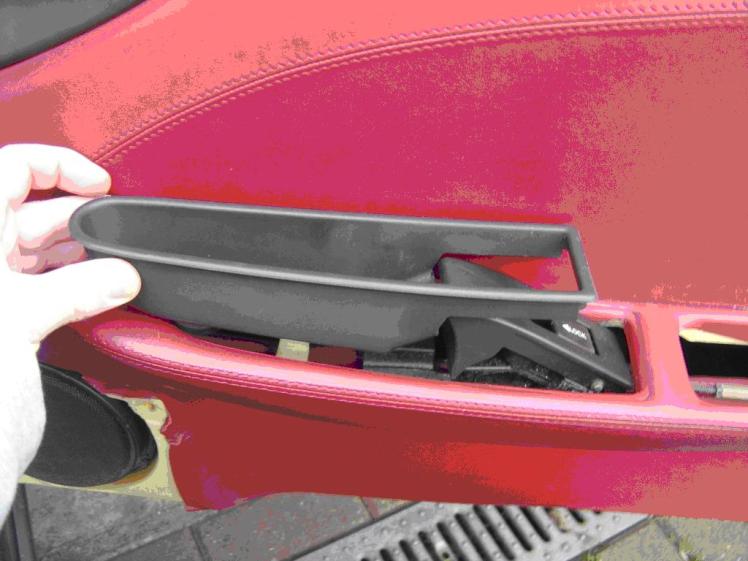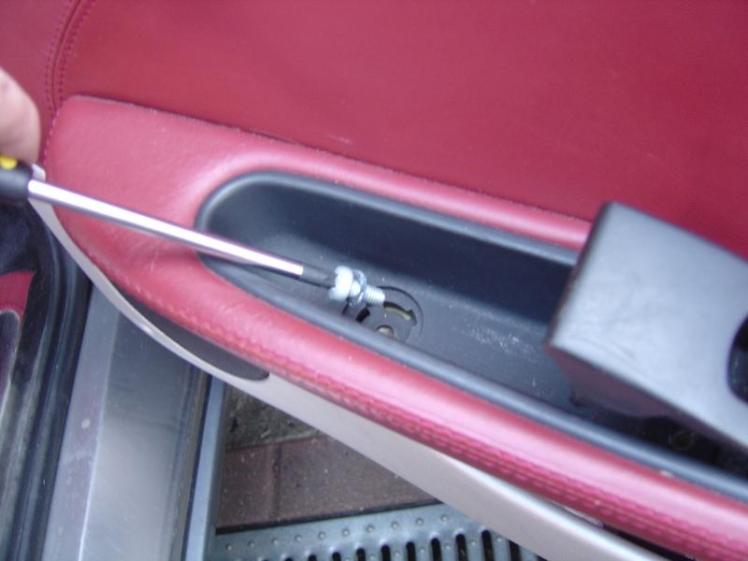 6) Remove the screw holding the handle surround in place (underneath the little bit of trim inside the handle surround)