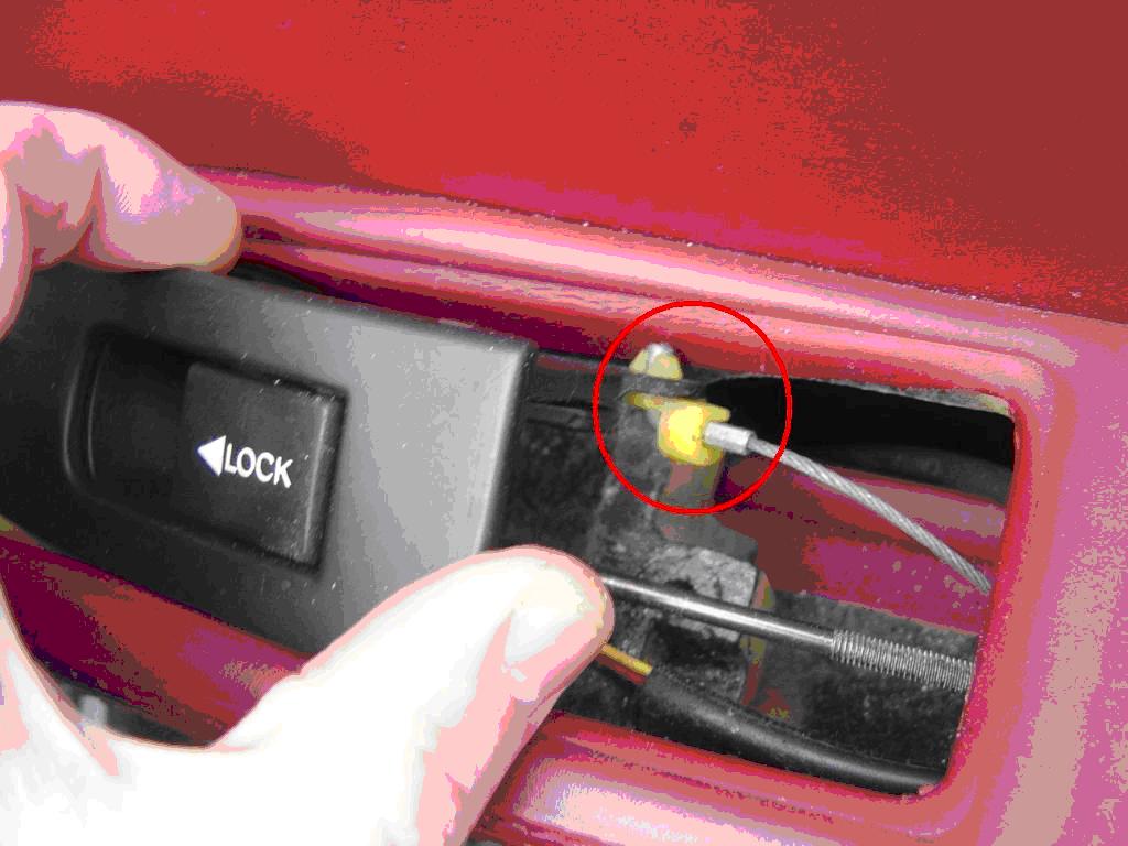 Undo and free off the door release cable from the bracket by undoing the nut at the end: