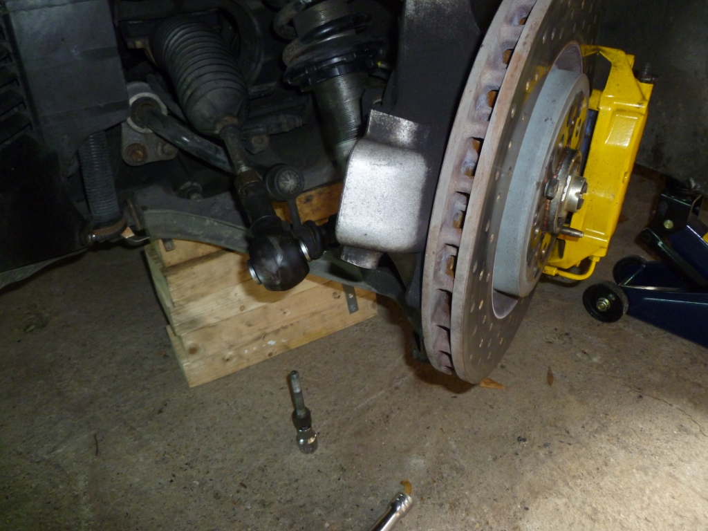 Next you need to remove the bolt that holds the track rod end to the hub – it is a 10mm hex head and will be very tight so I recommend the use of a long breaker bar. There are also balancing spacers that will come out with the bolt.