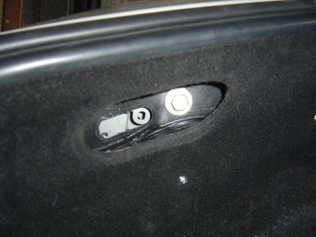 Next you’ll need to remove the bolt holding the side of the headlight in place. This is accessed from behind a grommet in the front boot compartment (out of interest, the hex socket to the left of the bolt in the picture below is how the aim/level of the headlight is adjusted):