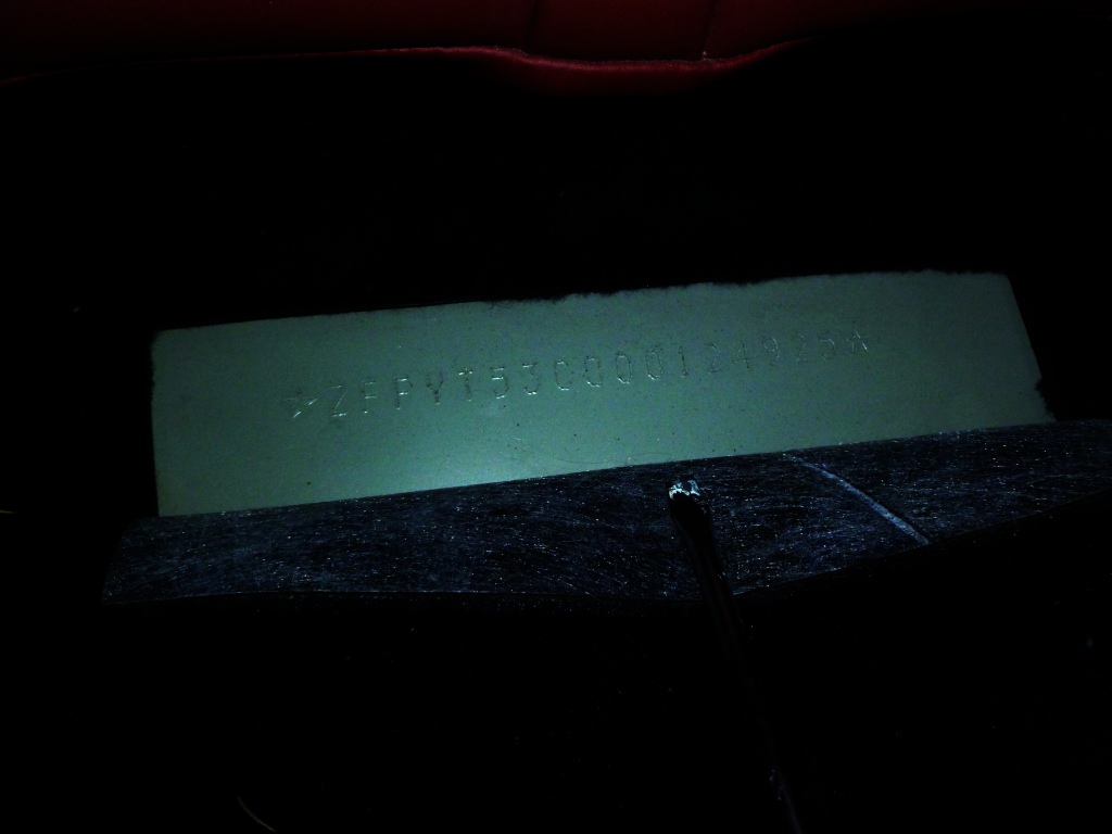 2. Chassis Number. This one is on a plate affixed to the steering wheel cowl. The number has some interesting information buried in the letters and numbers….