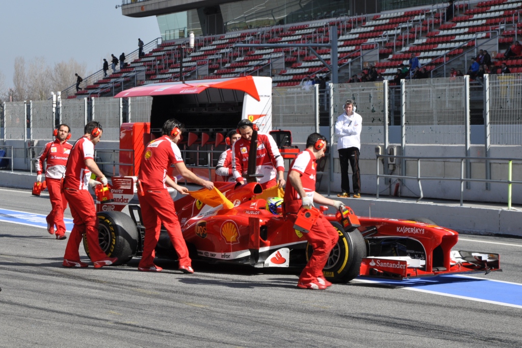 Throughout the day all the teams took considerable measures to protect their intellectual property. All the garages had screens to stop unwanted visitors poking their nose in but some teams took things a step further. Red Bull had special screens that they put on the rear of their car to cover the diffuser. Ferrari also had a rear cover as well as yellow flannels that they put on the side pods every time their car stopped in the pit lane.