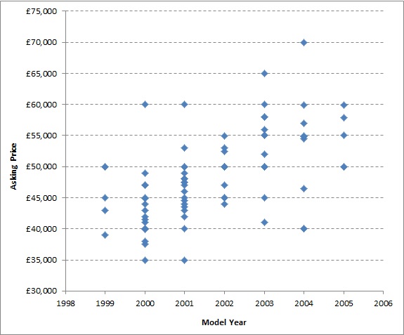 Hi Steve – as requested I have updated this post with the chart of model year plotted against asking price.