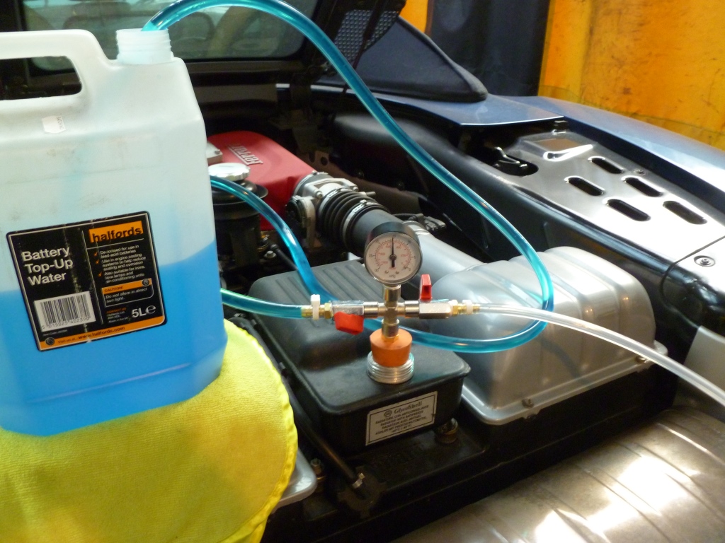 - Once about 2.5 litres had been drawn in, close the coolant side and pull some more air out of the system. Repeat every 2.5 litres.