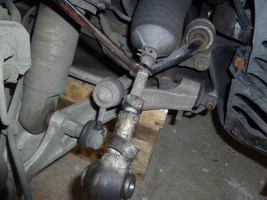 Next the bolt holding the track rod end to the hub needs to be loosened – use a 10mm hex bit.