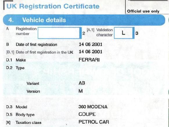 - Ferrari 360 & F430 UK Export Numbers