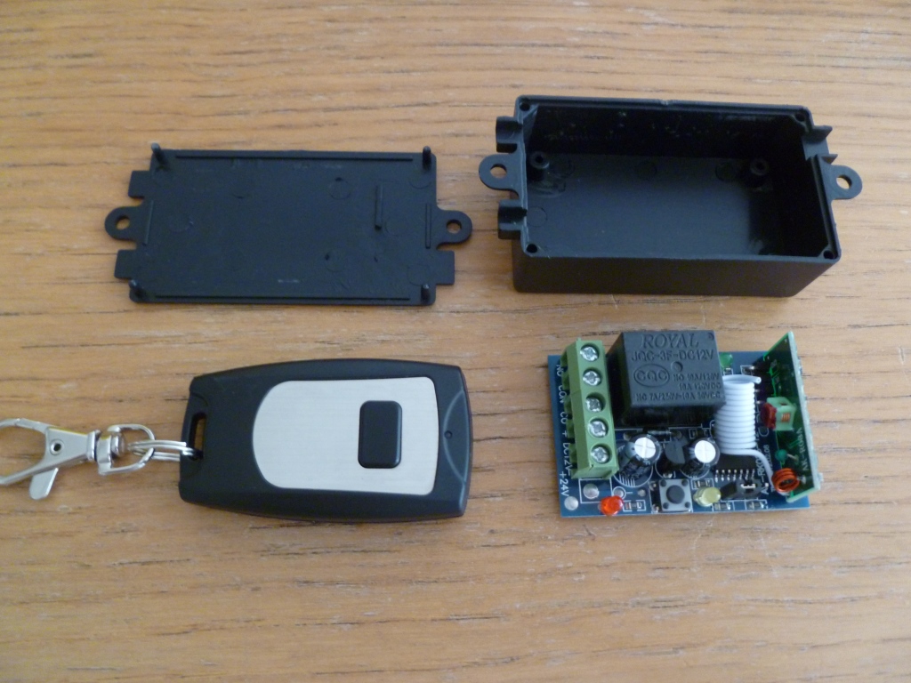 It would have been possible to use a manual switch in the cabin to activate the relays however in my F430 there are no spare switch spaces and I didn’t want to run wiring through the bulkhead. I chose to use a remote control to activate my valves and sourced a cheap remote control unit from China (pictured below).