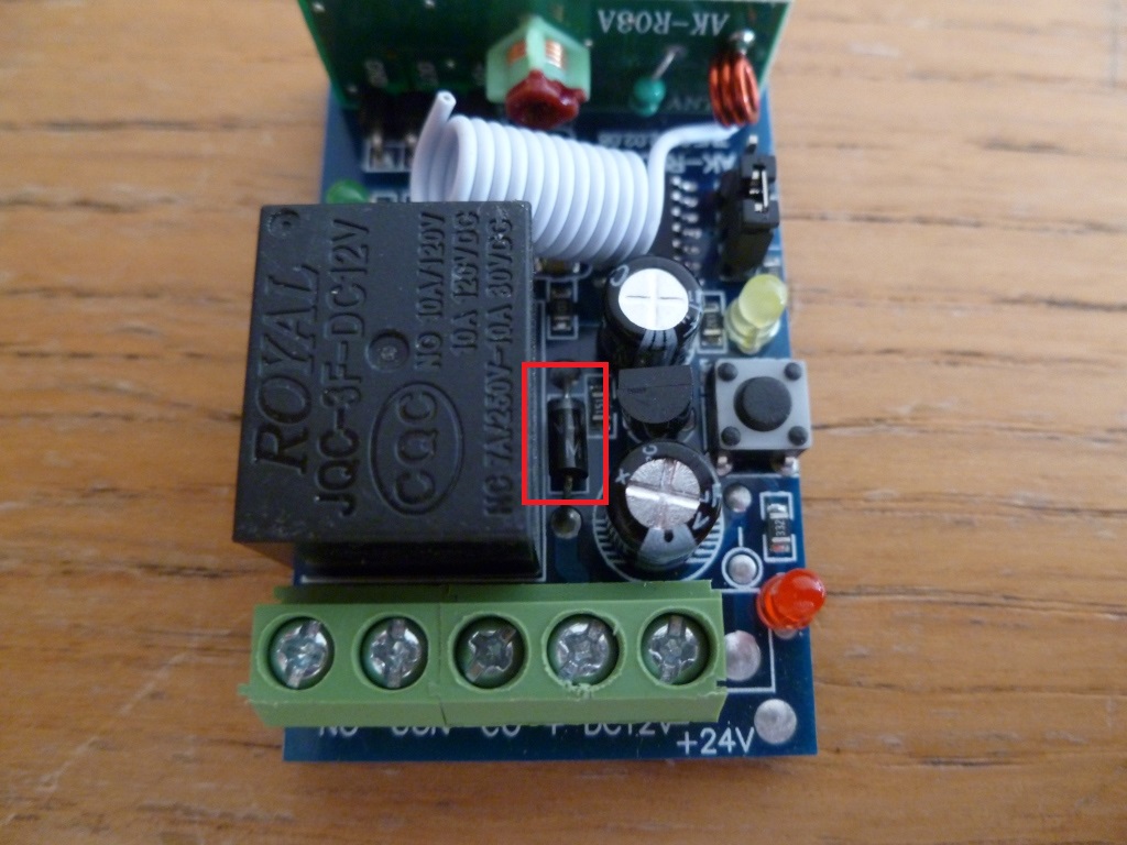 I checked that the remote control unit had a flyback diode already fitted but it would have been easy to solder one onto the board if needed.