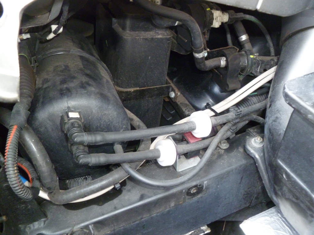 I was working blind but managed to disconnect the loom from the solenoid and plug in my cable. The RHS cable was fed into the same area and the two cables run up to the LHS fuel tank.