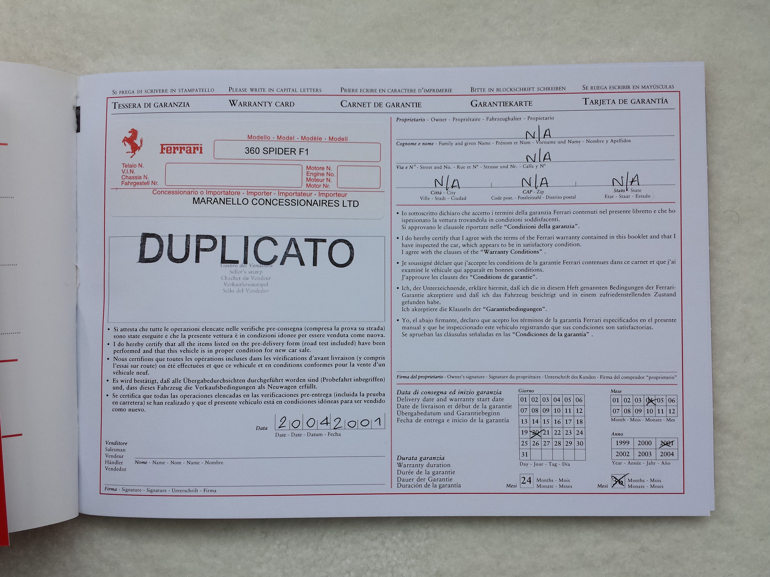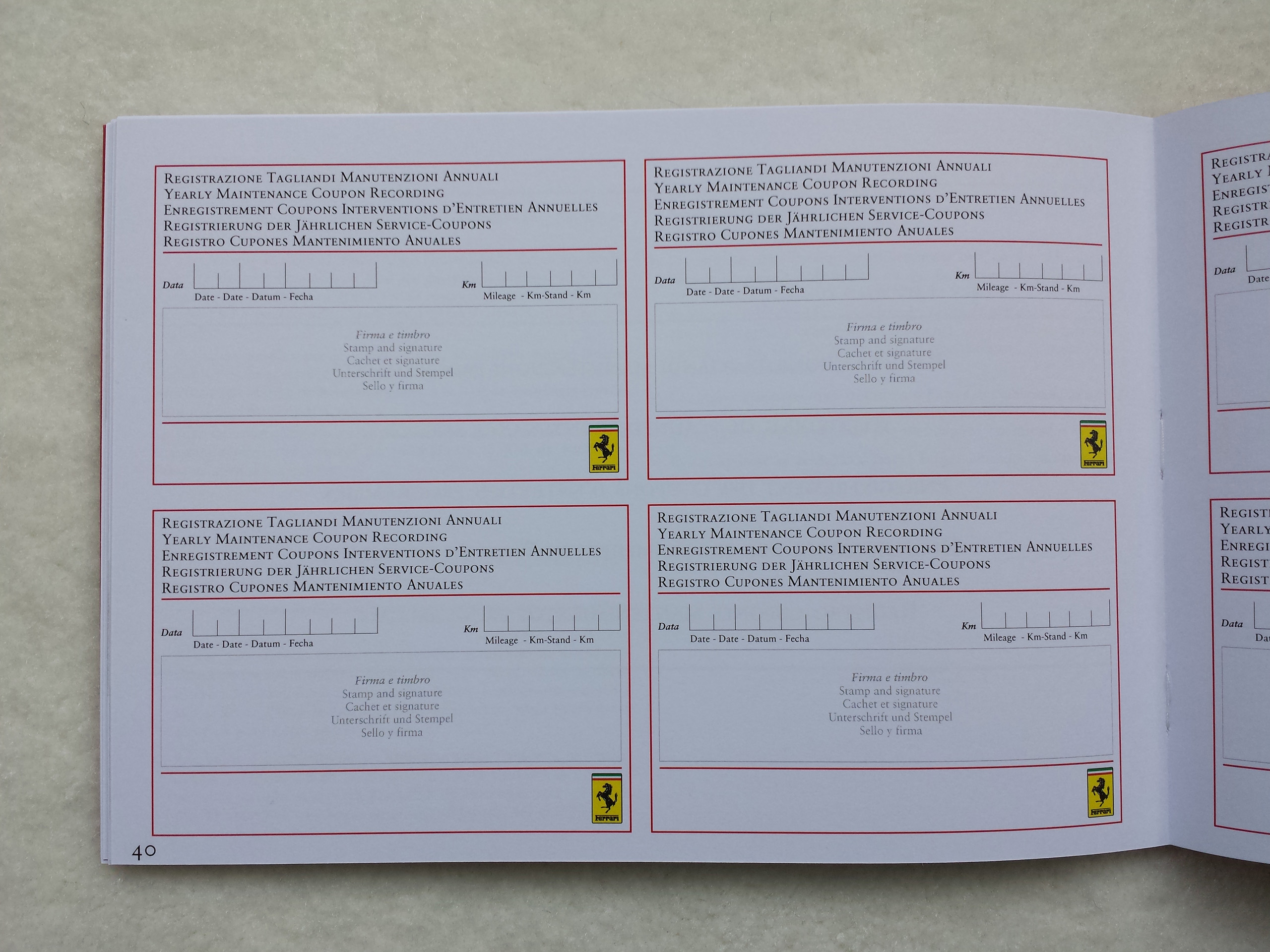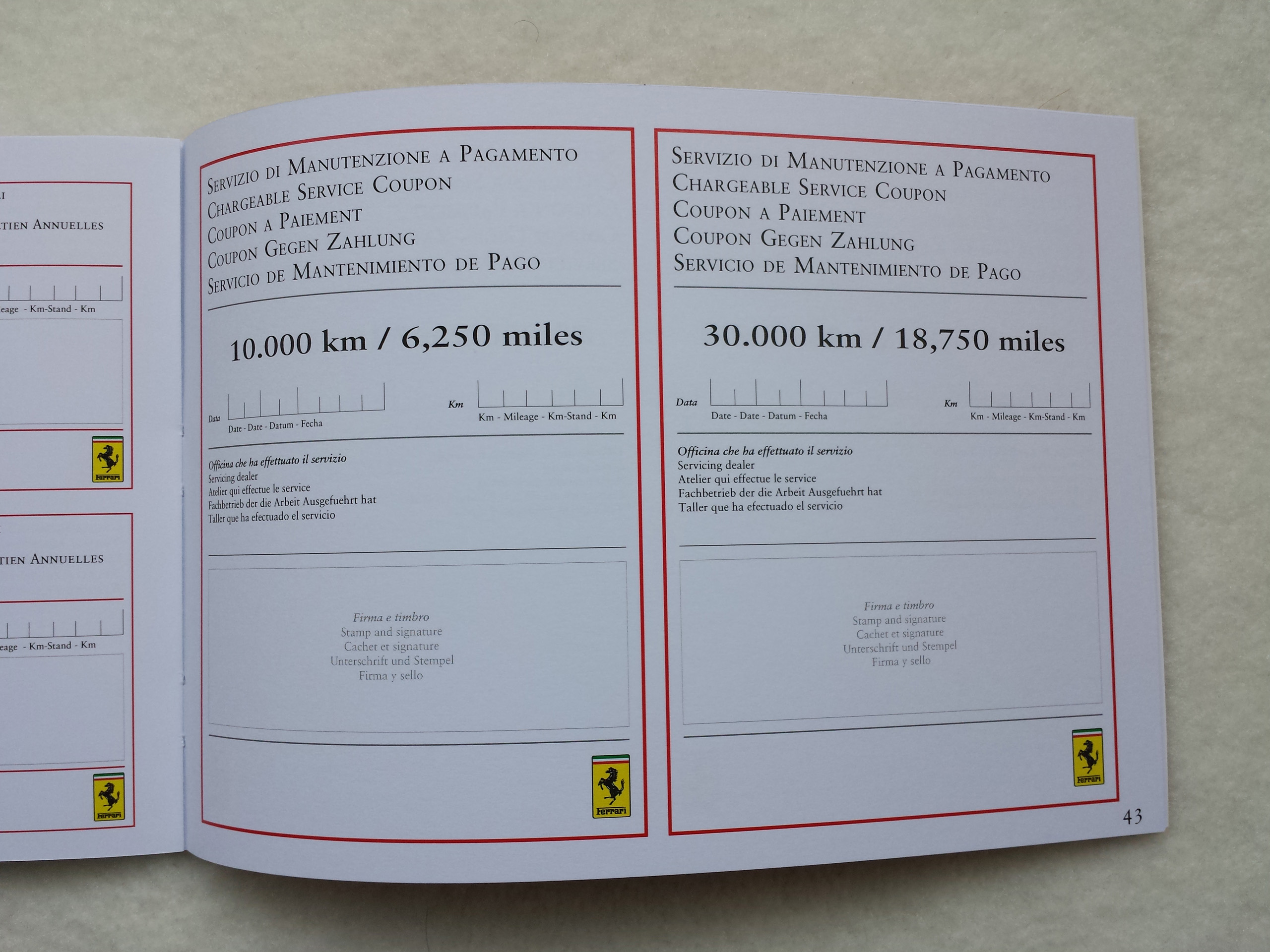 The first thing that needs to be done is to contact Maranello and ask them to check what booklets they have on the shelf. Each book is specific to the model and year of car, with many types sold out. If they don’t have your particular type in stock then tough luck – they aren’t printing any more and they wont sell you a 2003 book if you have a 2002 car.