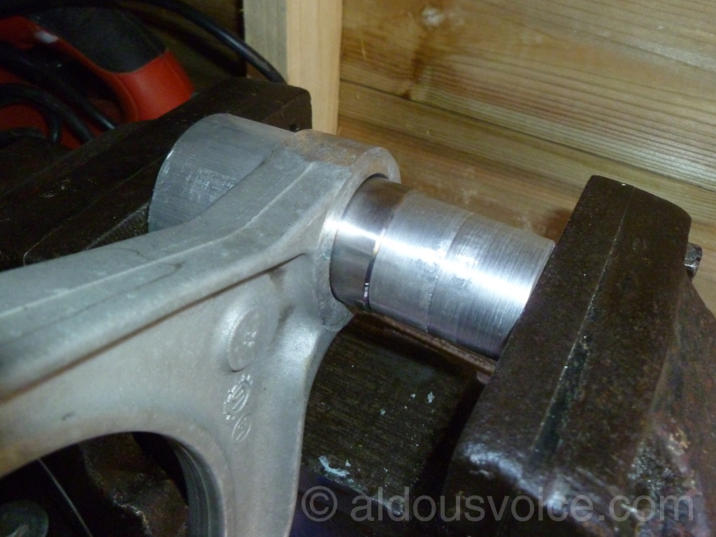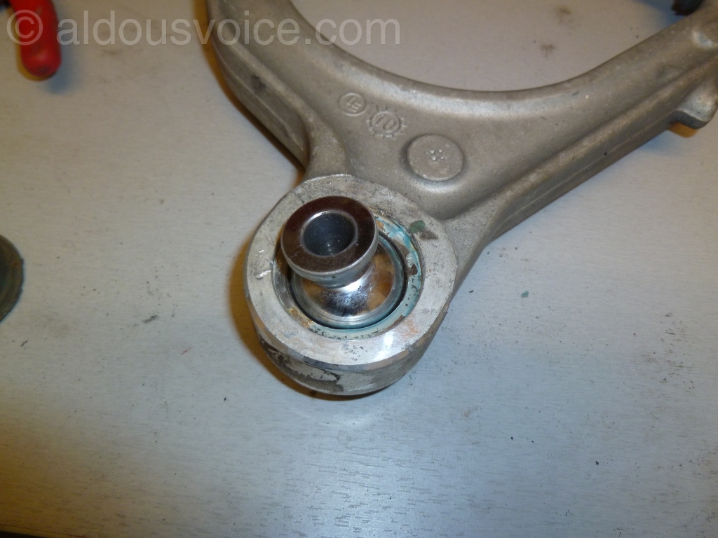 The joints are an interference fit in the wishbone and need to be pressed out. You can buy a tool from Hill Engineering but I use a couple of pieces of aluminium that I turned up on my lathe.