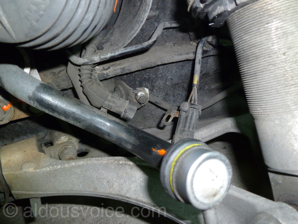 Disconnect the electrical connectors joining the ABS sensor wire and the accelerometer (if applicable) to the loom. The connectors are located near where the lower wishbone joins the chassis.