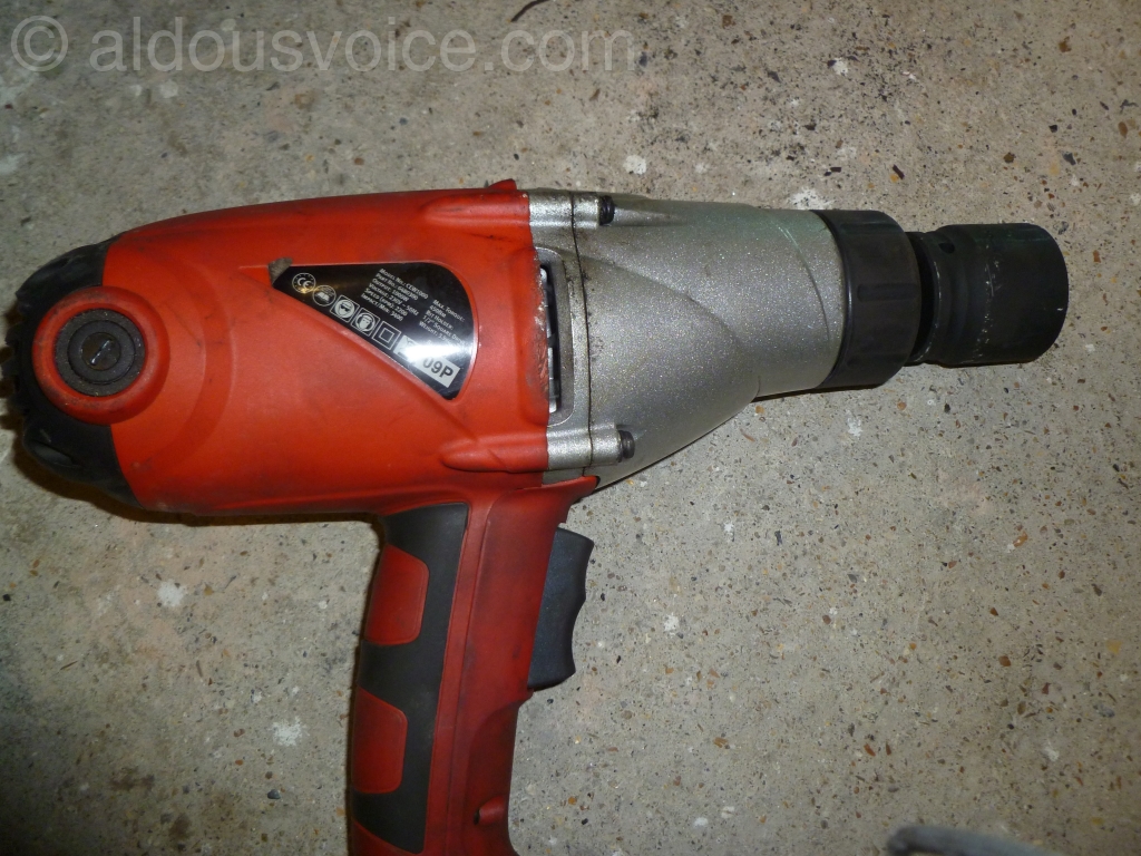 The hub nut needs to be loosened – this is much easier when the bearing is on the car. I use a high power electric impact wrench which makes short work of the nut, however a breaker bar will suffice if you have an assistant press the brake pedal to stop things from turning. You will need a 36mm impact socket.