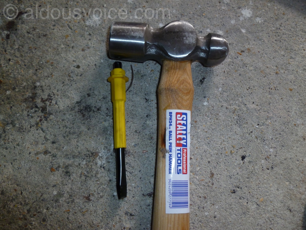 Finally the nut needs to be staked to stop it from turning. I use a chisel and large hammer.