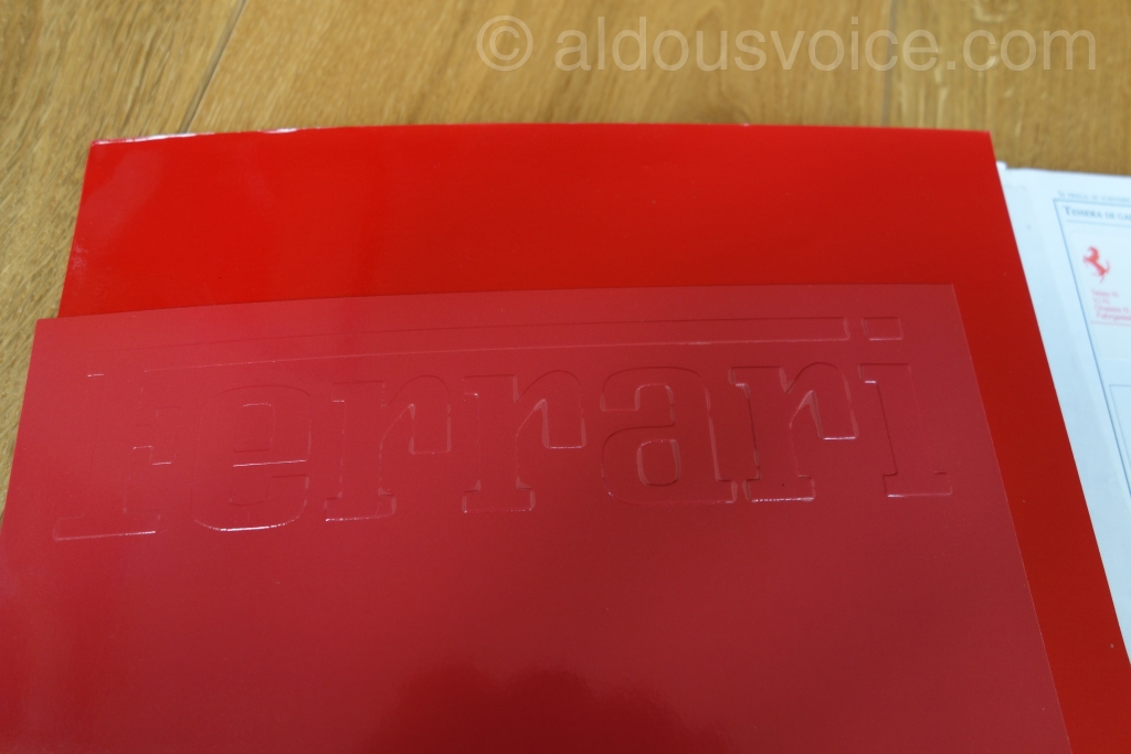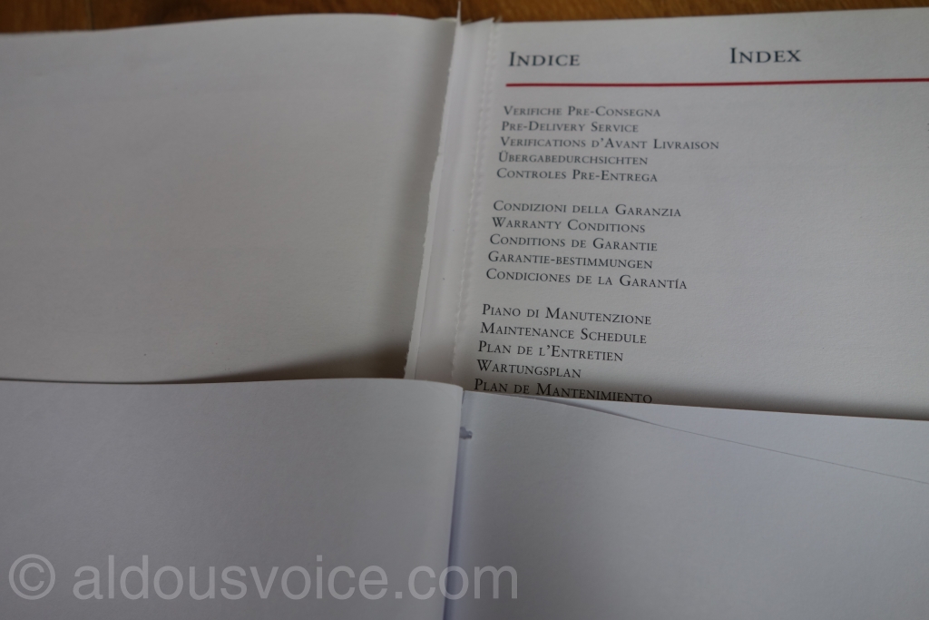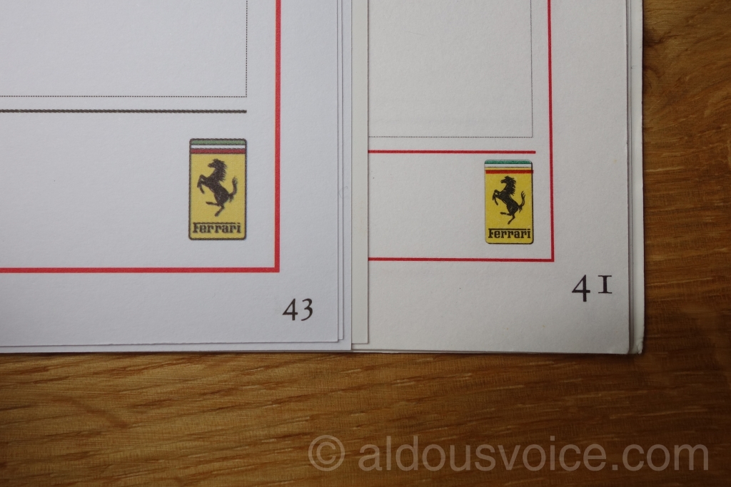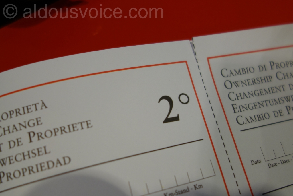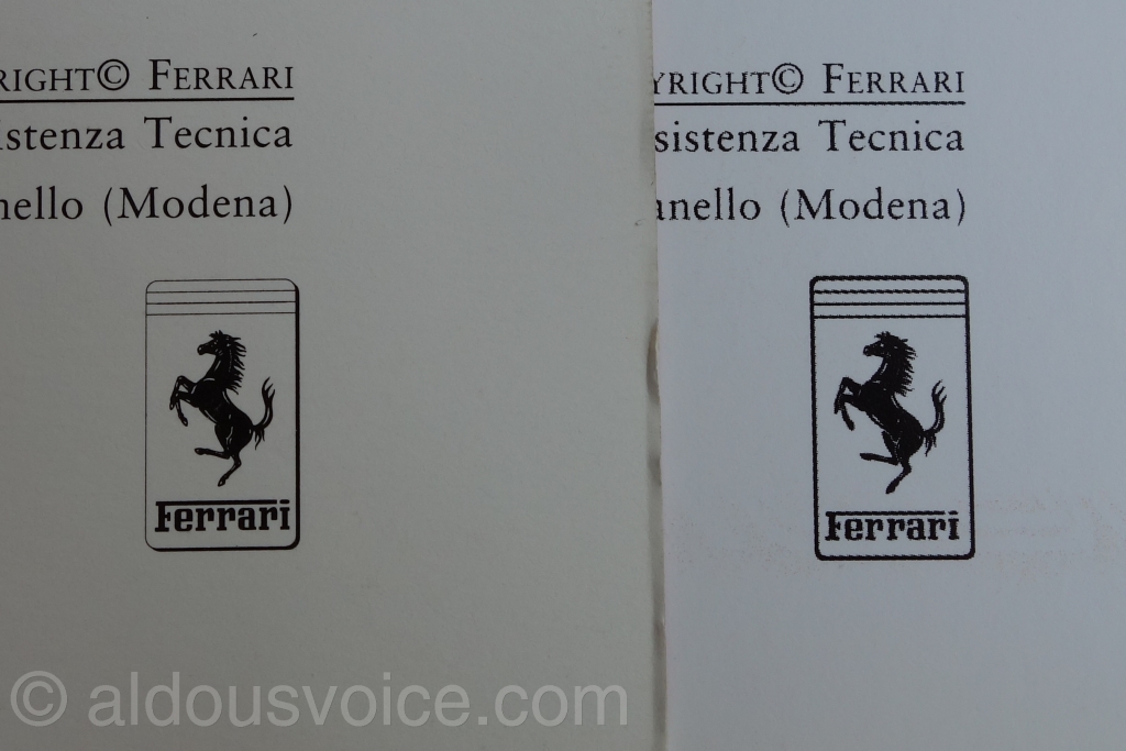 Bizarrely, the fake had “FERRARI” embossed on the inside cover. This has not been present on any of the books I have looked at however, it may be a feature of books supplied with late models.
