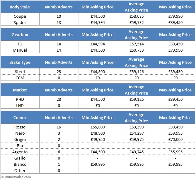 That’s it for now. Once Christmas is over we can see of these price rises are sustainable. I personally can’t see another jump like last year unless F430 prices start to rise. Please do get in touch if you want anything in particular.
