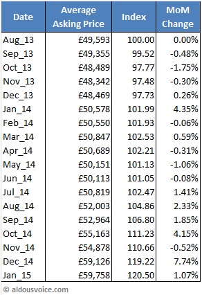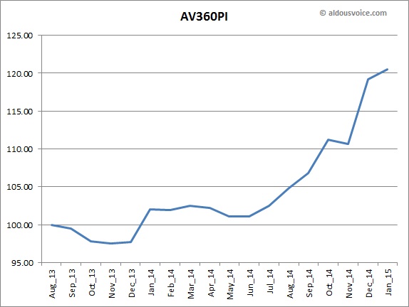 Happy New Year! I hope 2015 is brings health and prosperity to all. If you’re a 360 owner then prosperity in your car portfolio is something that you have become accustomed to and this month’s update brings more of the same. Average asking prices have jumped another 1.07% over the last month, raising the price index to 120.50.