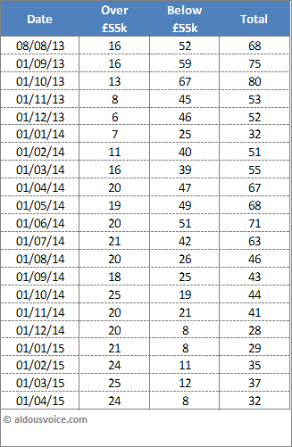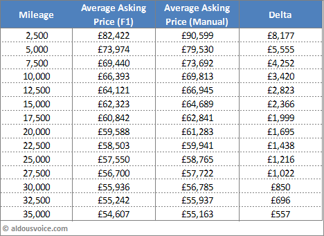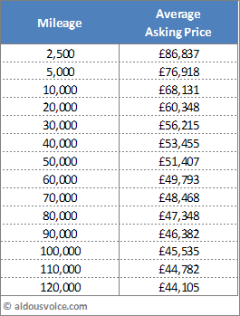 Here is the table of average asking prices for different mileage points. The price differential between the lower mileage points has now increased to more realistic levels.