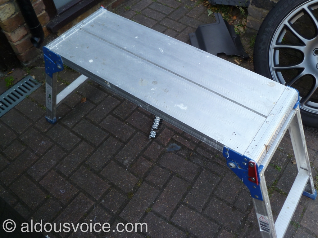 The bumper can now be withdrawn off the car. You’ll need somewhere to place it – I use a builders step that is just the right size to safely balance the bumper on.
