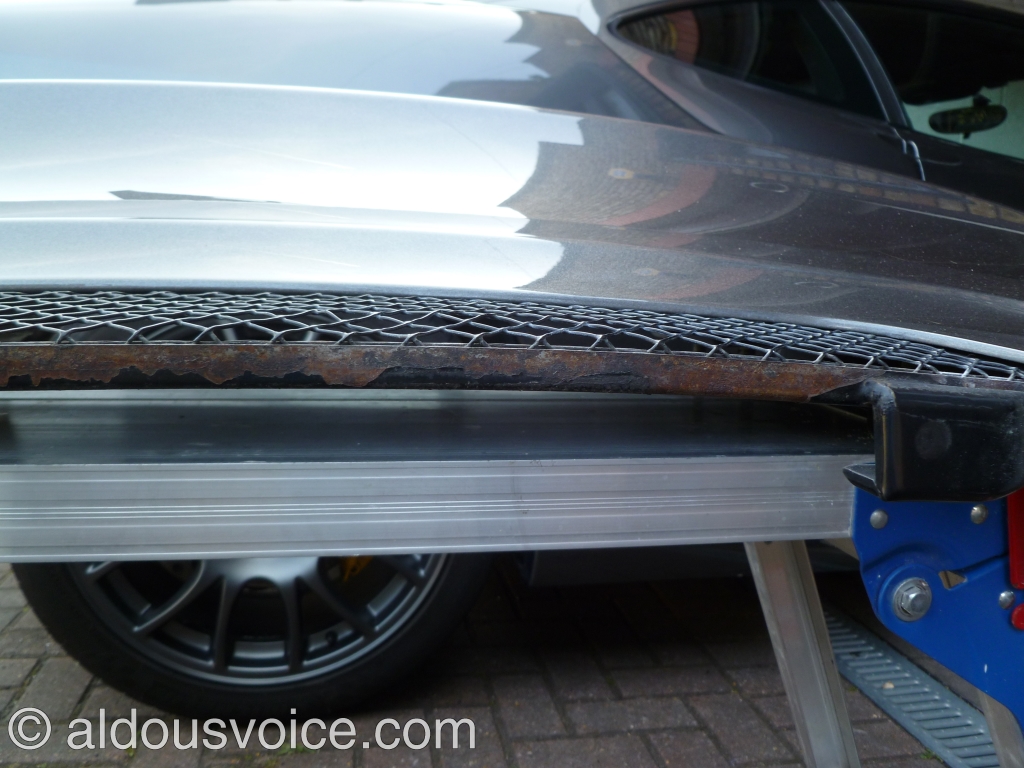 This is the reason my bumper had to be taken off – the rear grill had gone rusty on the top edge. It is a common problem on many F430s and although a local repair is possible I chose to replace with a new part. The grill is held in place with nine self tapping screws.