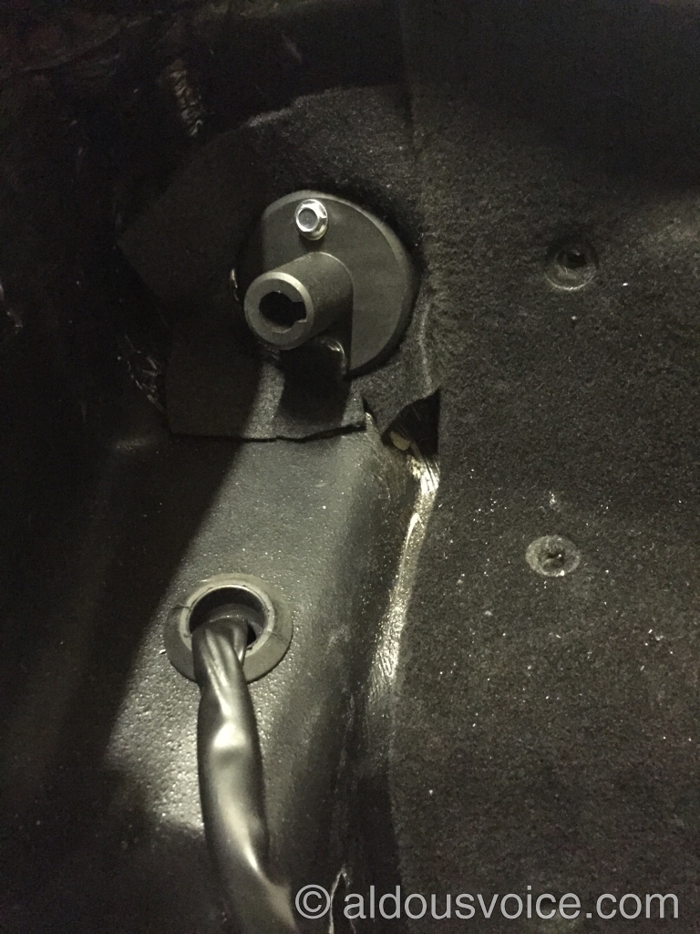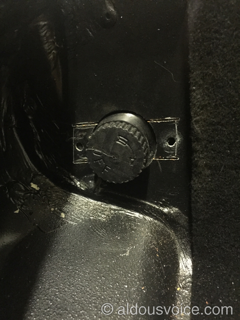 Before attempting any work the battery must be disconnected (see this post for details on access). In order to get to the switch, the carpet trim must be removed as well as the metal cover over the brake fluid reservoir. The switch and associated cables can be disconnected and the switch removed from the car.