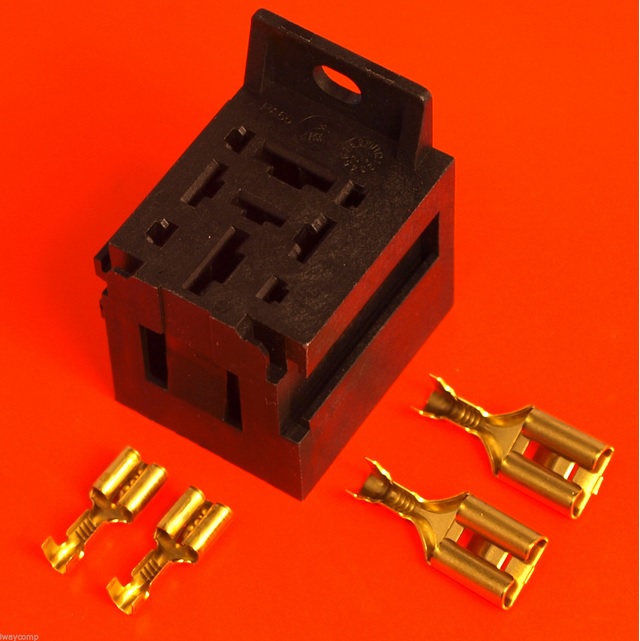 I suggest that you verify that the holder you obtain fits the new relay before proceeding any further – the new 50A relay has two 6.5mm blade contacts (control side) and two 9.5mm blade contacts (load side).