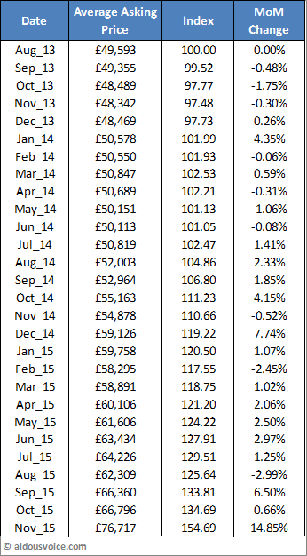 The headline this month is that average 360 asking prices have increased a monumental 14.85% since this time in October. The price index now stands at 154.69. However, before owners jump for joy (and prospective purchasers start weeping) it is worth taking some time to understand how this jump has occurred. In August a glut of sub £50k cars came onto the market which kept average prices down. These cars have now been taken off the market which has caused the sudden increase. If you are a 360 owner then your car hasn’t gone up in value by 15% – sorry…