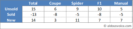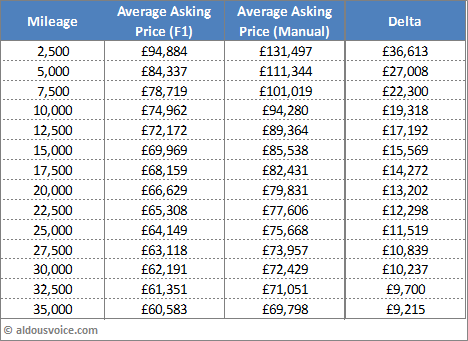 Manual cars are holding a firm premium over their F1 equipped counterparts. I expect this trend to continue and even widen.