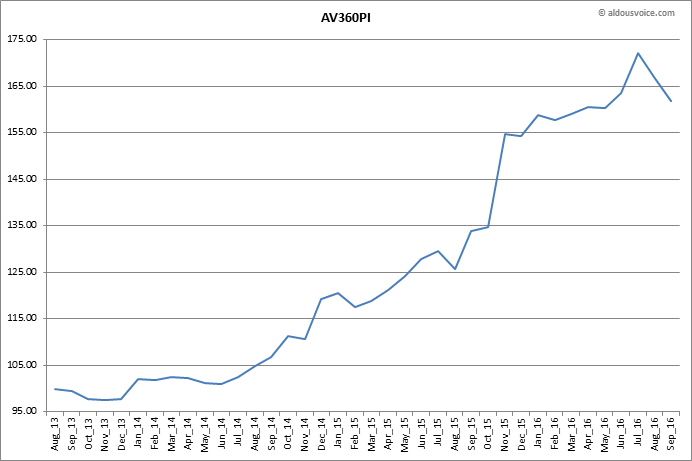 Ferrari 360 prices have fallen for a second month in a row – the average price is now 3.14% lower than this time last month which leaves my price index at 161.77.