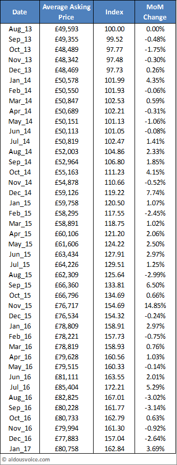 Happy new year! Contrary to my prediction, Ferrari 360 prices have actually risen over the last month and reversed the falls seen in the prior two months. The average price is now nearly £81k and the index stands at 162.84. This surge has been caused by a number of very expensive cars being added to the top of the market.