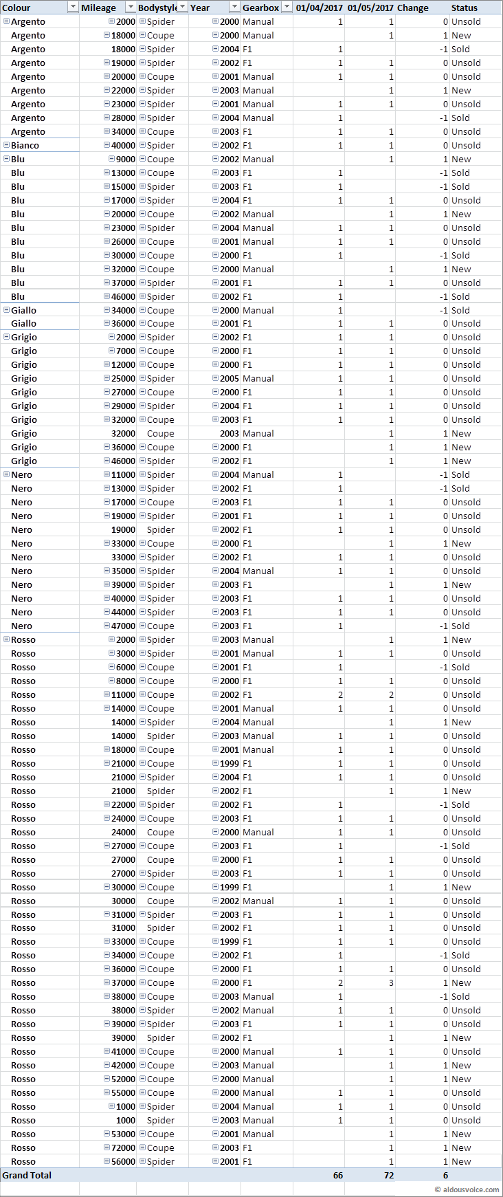 Average 360 prices have pulled back a little – the index is now 166.04, down 1.57% over the last month. This has been driven by more cars being advertised in the sub £70k bracket which has weighed the average price down. News of a snap general election seems to have put the brake on many purchases with buyers waiting to see what happens before committing their money. Given the election isn’t until 8th June I wouldn’t be surprised if prices also edged down this month.