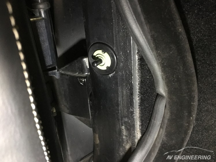A temporary fix is to disconnect the switch and poke the wire into the chassis hole – this will fool the car into thinking the door is always closed. The shroud part number is 68917600 and they are still available to buy (unlike the switches themselves which are NLA). However the material and design of the shroud simply isn’t up to the job of holding this switch in place with the door pressed against it. My solution is simple and cheap – I use a thick blanking grommet for a panel hole of 29mm, drill a 20mm hole into the grommet and use this to hold the switch in place. The thick rubber grommets I have sourced are more than adequate to do the job.