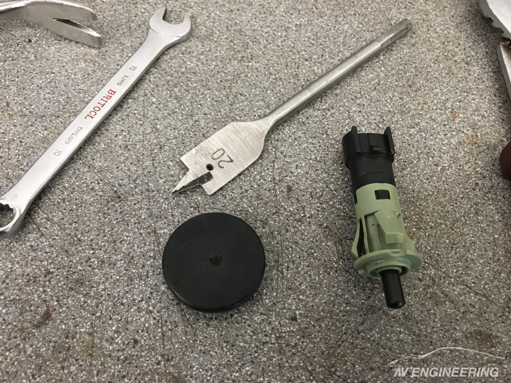 A temporary fix is to disconnect the switch and poke the wire into the chassis hole – this will fool the car into thinking the door is always closed. The shroud part number is 68917600 and they are still available to buy (unlike the switches themselves which are NLA). However the material and design of the shroud simply isn’t up to the job of holding this switch in place with the door pressed against it. My solution is simple and cheap – I use a thick blanking grommet for a panel hole of 29mm, drill a 20mm hole into the grommet and use this to hold the switch in place. The thick rubber grommets I have sourced are more than adequate to do the job.