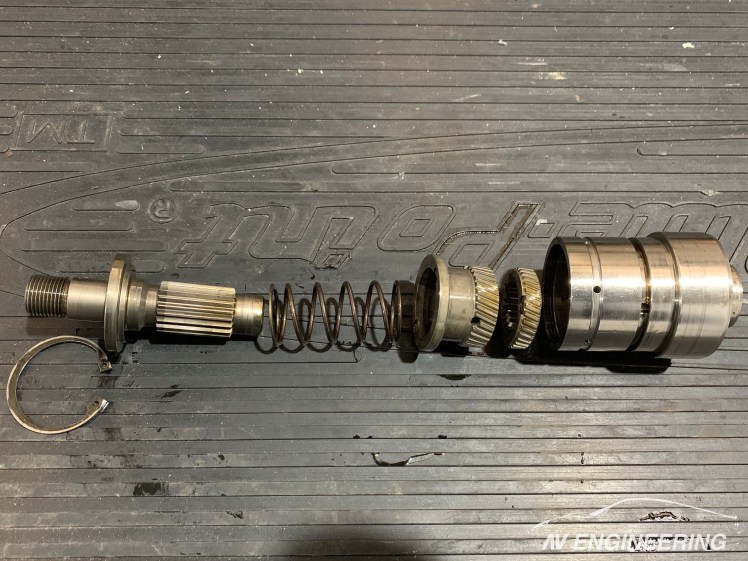 The variator only has six parts which are shown below. The circlip holds everything together and the spring holds the internals in the resting/off position.